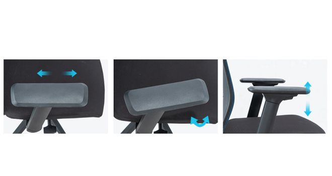 Armlehnen mit PU-Bezug, weich und bequem, nach oben und unten/vorwärts/drehbar verstellbar, umlaufende Armlehne.