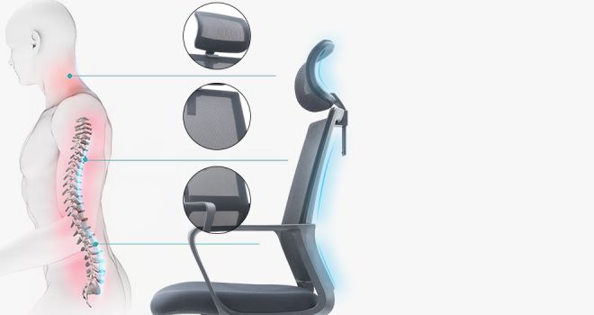 Ergonomische Rückenlehne, stützt den Rücken und entspannt sich auf natürliche Weise