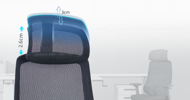 Höhenverstellbare Kopfstütze mit 3 cm adaptivem Schiebesystem