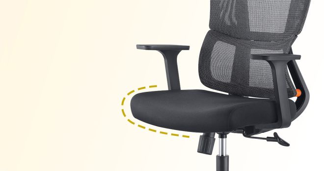Das Design der Sitzfläche passt sich vollständig den Kurven des menschlichen Körpers an, trägt zur Entspannung der Muskelspannung bei und bietet Sitzstabilität für eine bessere Konzentration.