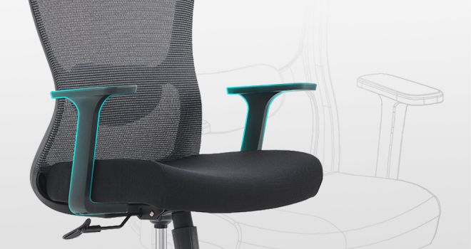 Stromlinienförmige, verstärkte Armlehnen sorgen für stabile Ellenbogenunterstützung