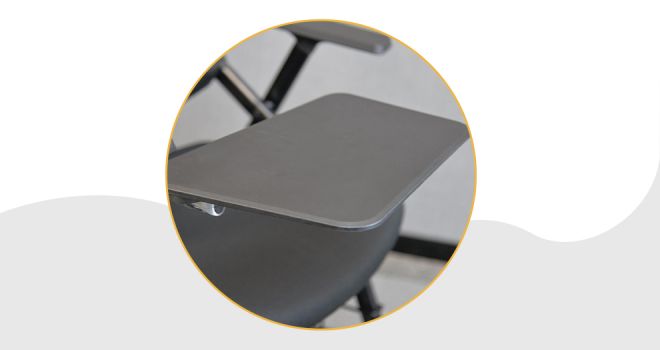 | Schreibtafel | PA-Platte mit innenliegender Stahlplatte. 180°-Drehung, 16 mm starke drehbare Stütze aus massivem Stahl | ||||
