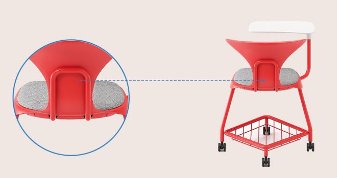 | Base | 22 mm dicke, rot lackierte Metallbeine | 22-mm-Beine aus rot lackiertem Metall mit Bücherregal/In-Place-Hebegestell, Fünfsternfuß, Φ50-mm-PU-Nylonräder | |||